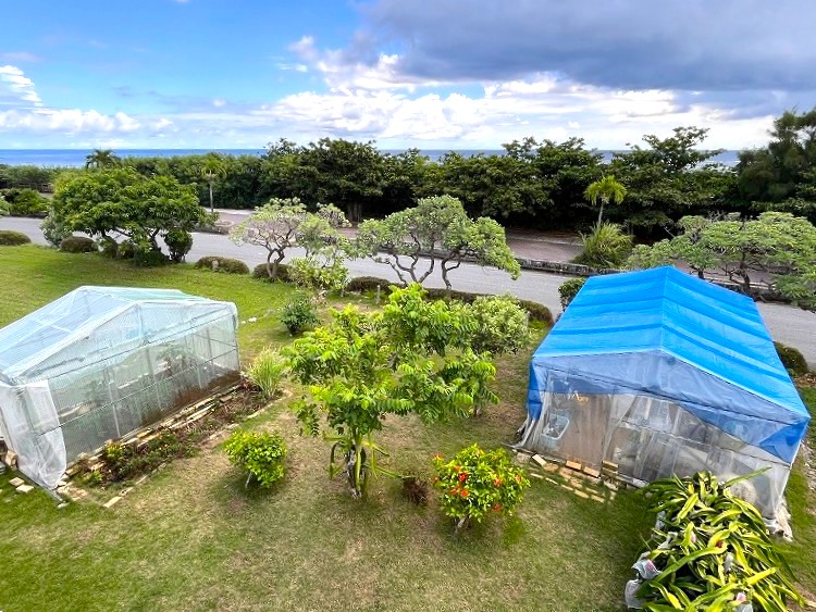 さらに、頑丈な鉄骨づくりのビニールハウスが2棟あるので、台風の多い宮古島でも安心して様々な植物を育てることができます。家庭菜園で新鮮な野菜を作ったり、南国の花々を育てることも可能です。