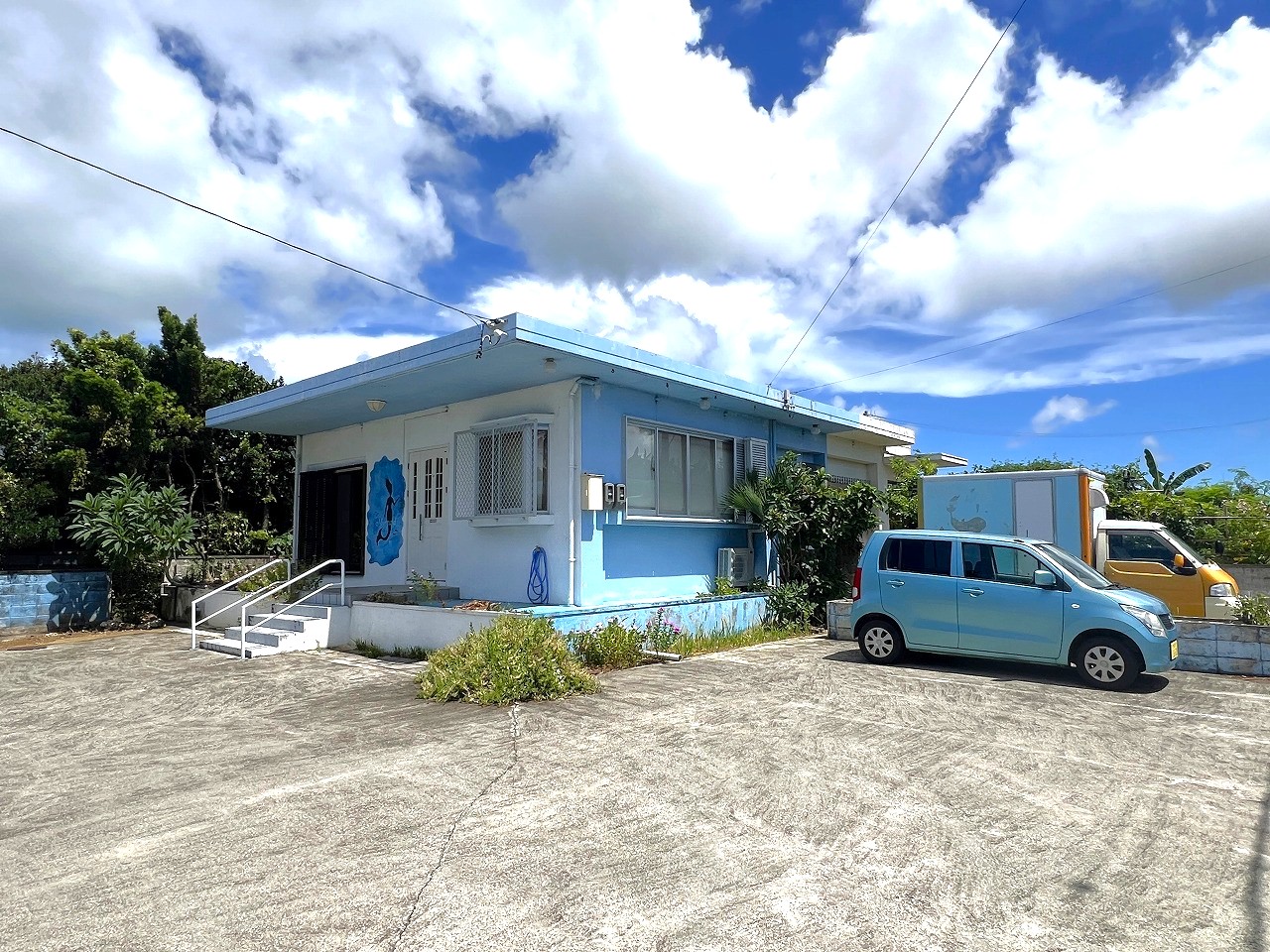 元カフェスペースと住居が一体の戸建です。建物裏には136坪の家庭菜園があります。与那覇前浜ビーチまで車で約5分(2.5キロ)。目の前にはAコープ下地店があり、郵便局なども近くにあり便利な立地です。