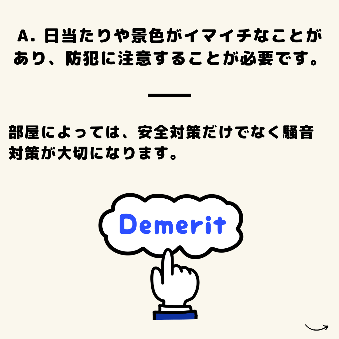 A. 「日当たりや景色がイマイチなことがあり、防犯に注意することが必要」
