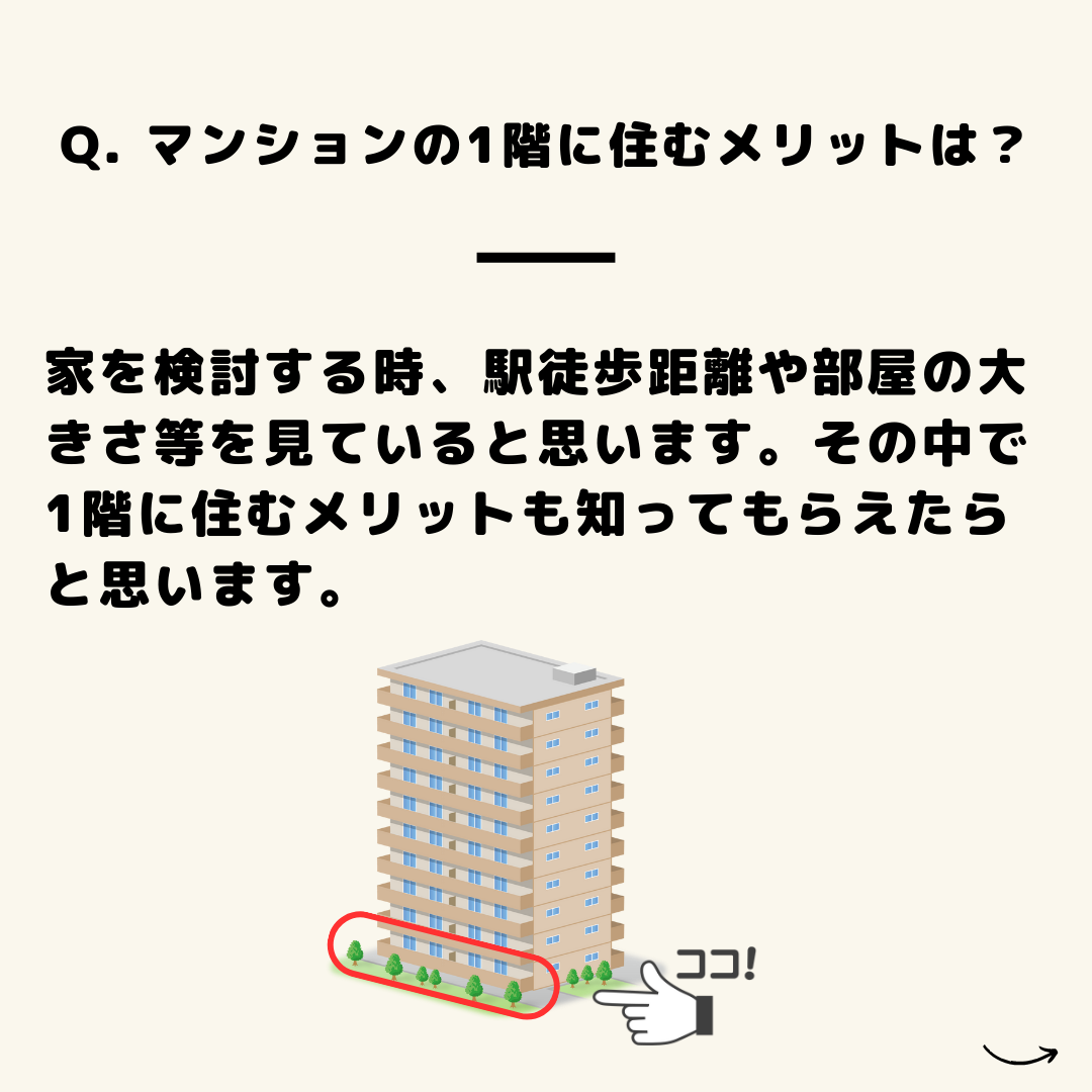 今回は「マンションの1階に住むメリット」についてです。