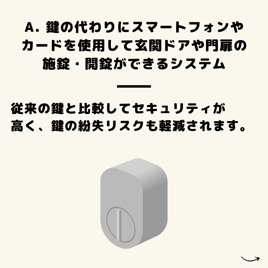 A. 鍵の代わりにスマートフォンや
