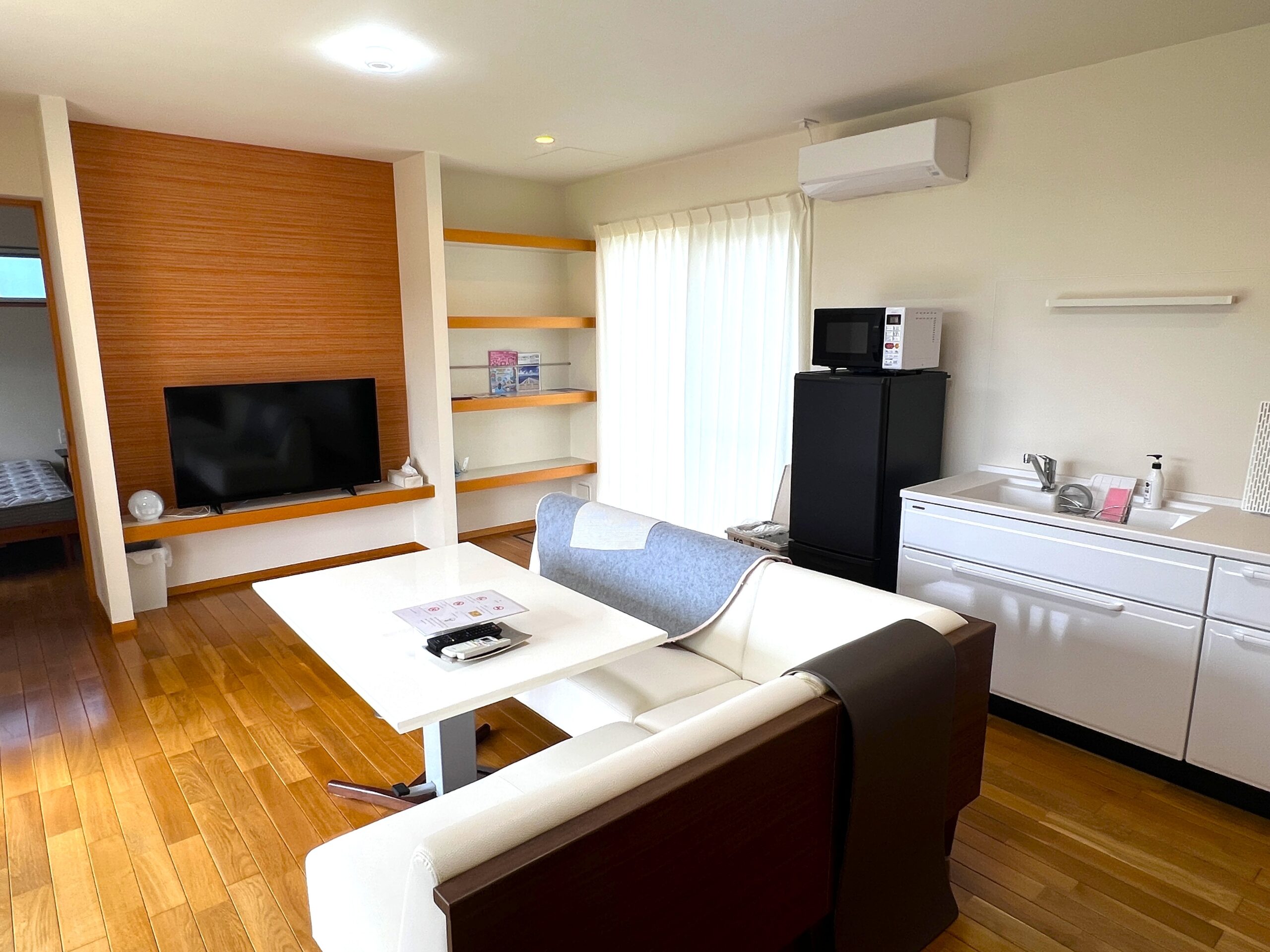 設備も充実しており、各建物に太陽光発電システム、蓄電池、軟水器、合併処理浄化槽が設置されています。宿泊施設としての運営に必要な家具・家電も含まれており、すぐに事業を開始できる状態です。